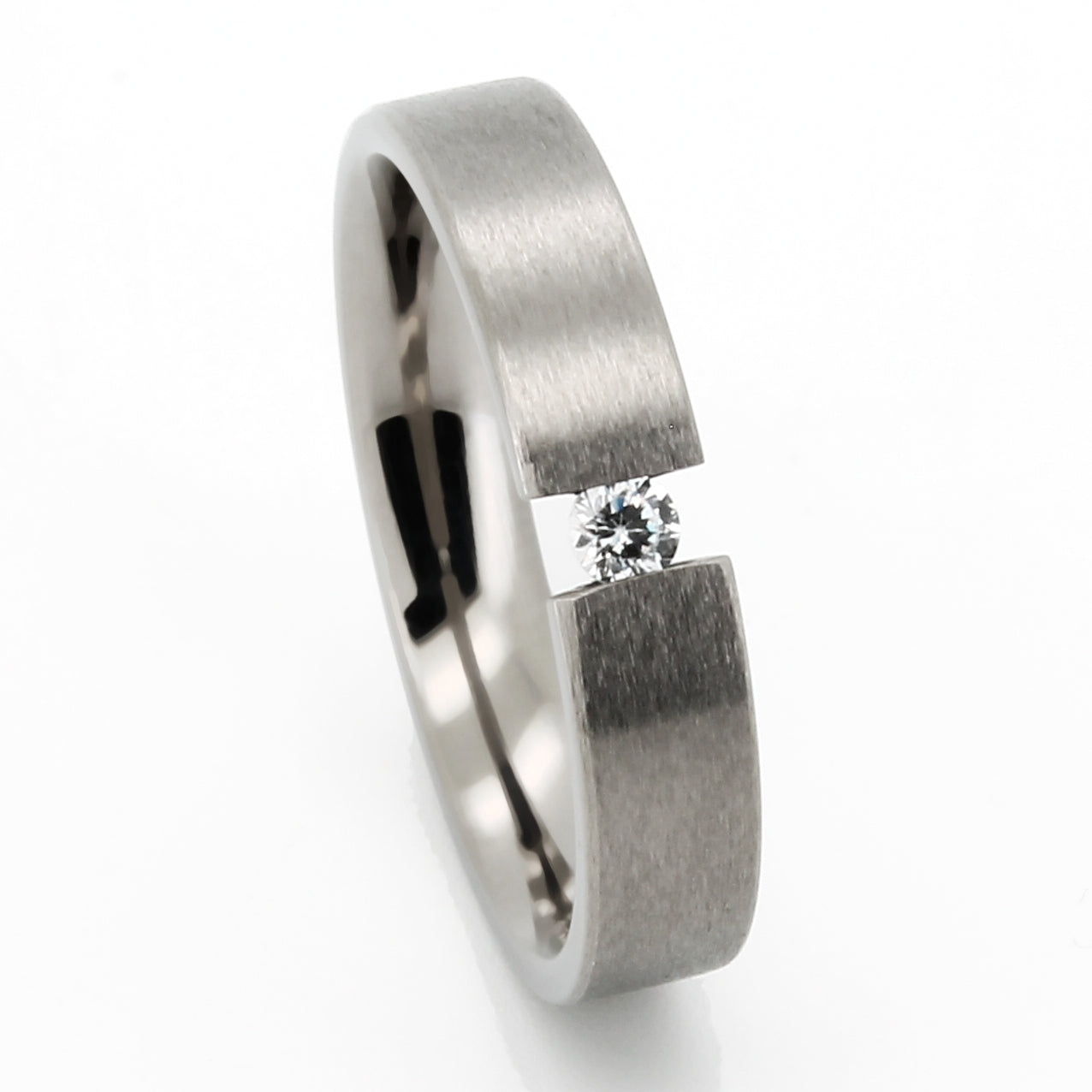 Moderner Verlobungsring aus Titan mit zertifiziertem Diamanten (auch Lab-Grown). Hautfreundlich, langlebig & bequem – mit persönlicher Gravur.