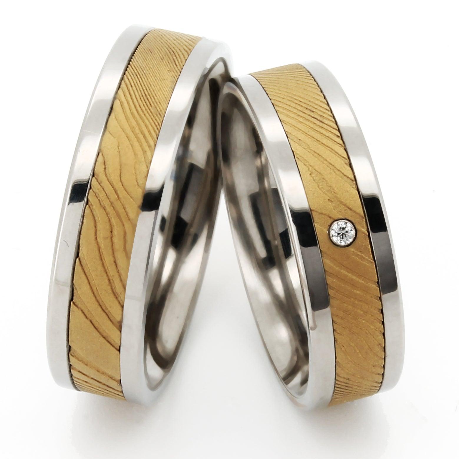 TICO® I trouwringen & trouwringen titanium met damaststaal IP goud en diamant ERDGT05BRF20