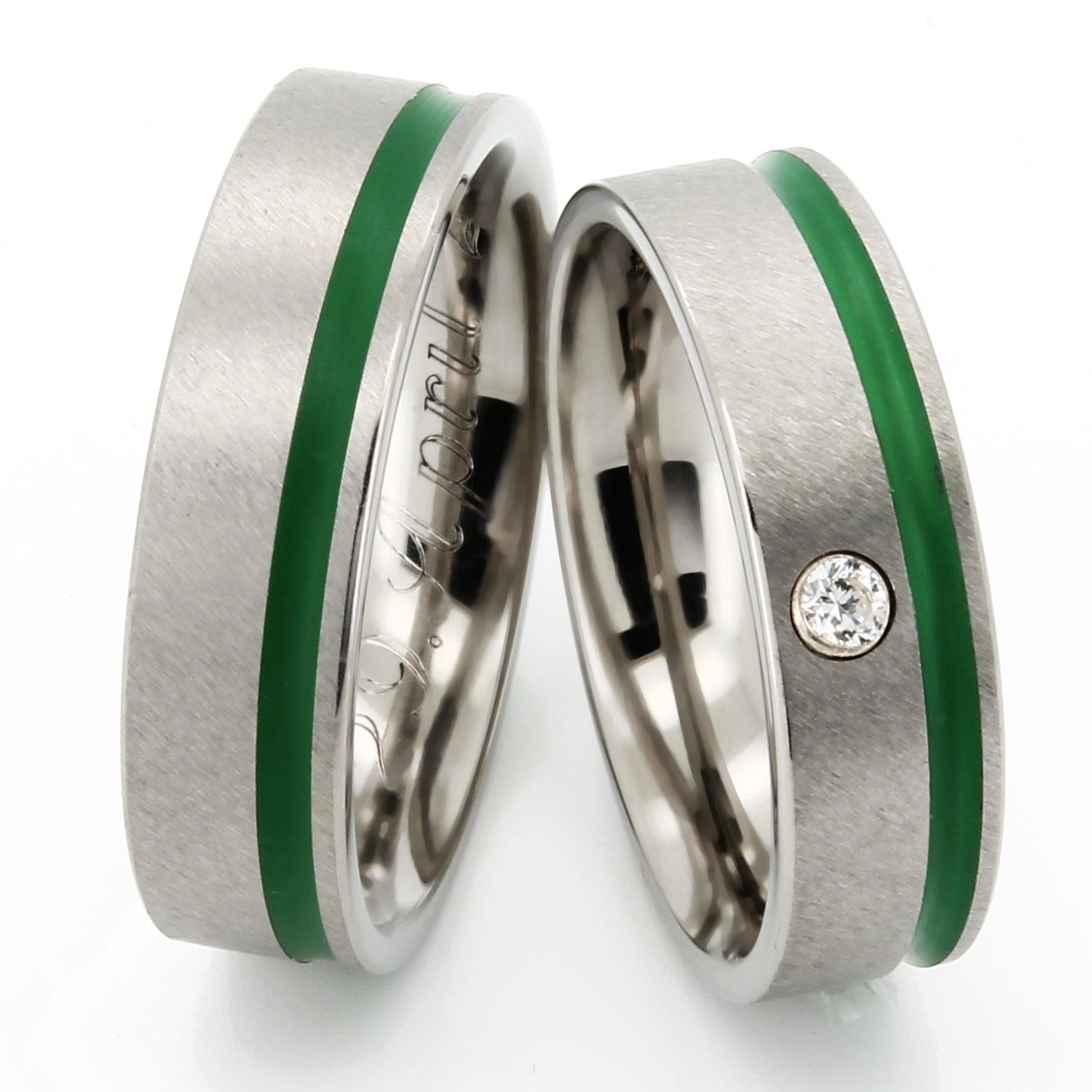 TICO® I trouwringen & trouwringen titanium met groene keramiek en diamant