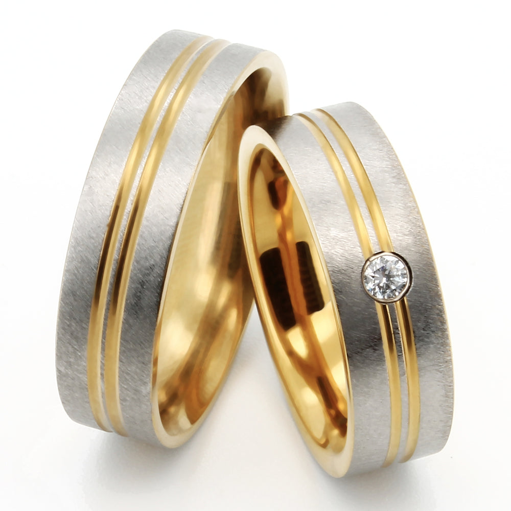 Pierścienie partnerów symbolizują solidarność i wspólne ścieżki. Tytanowe pierścionki partnerskie zachwycają prostą elegancją i możliwością indywidualnych kombinacji. Czy to ze specjalnym grawerem, czy w połączeniu z niebieskimi akcentami lub złotem – nasze oferty dają Ci możliwość uczczenia swojego związku w wyjątkowy sposób.