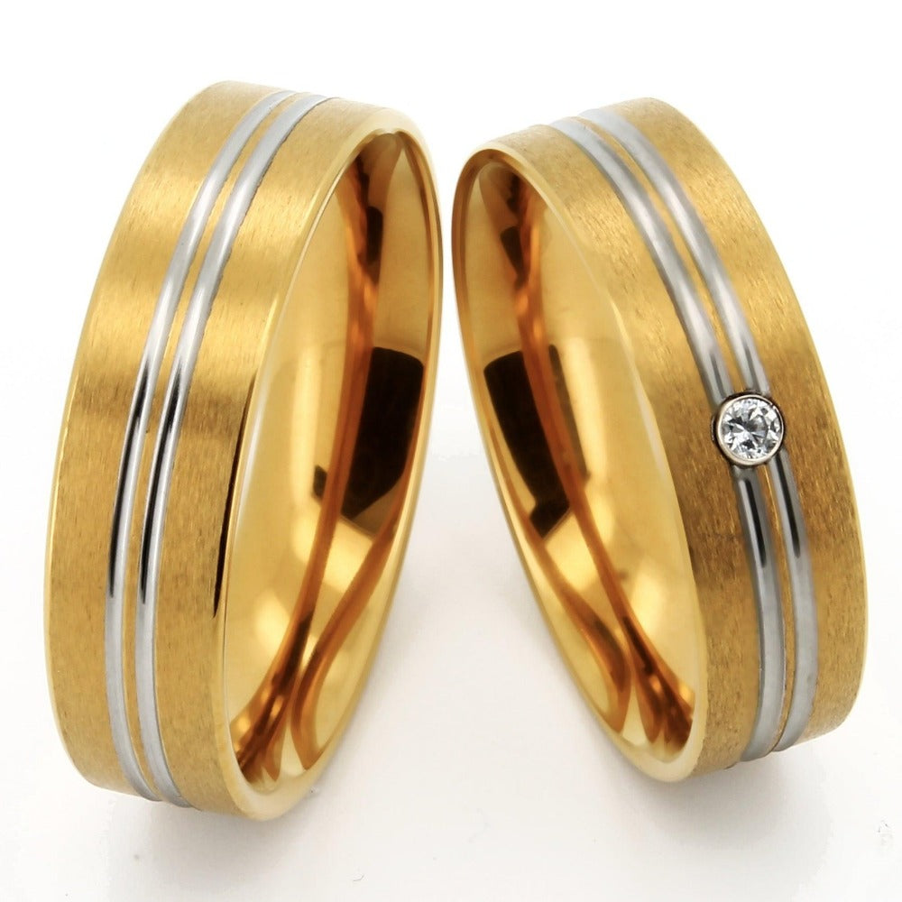 Obrączki i obrączki ślubne TICO® I tytanowe złoto IP z diamentem