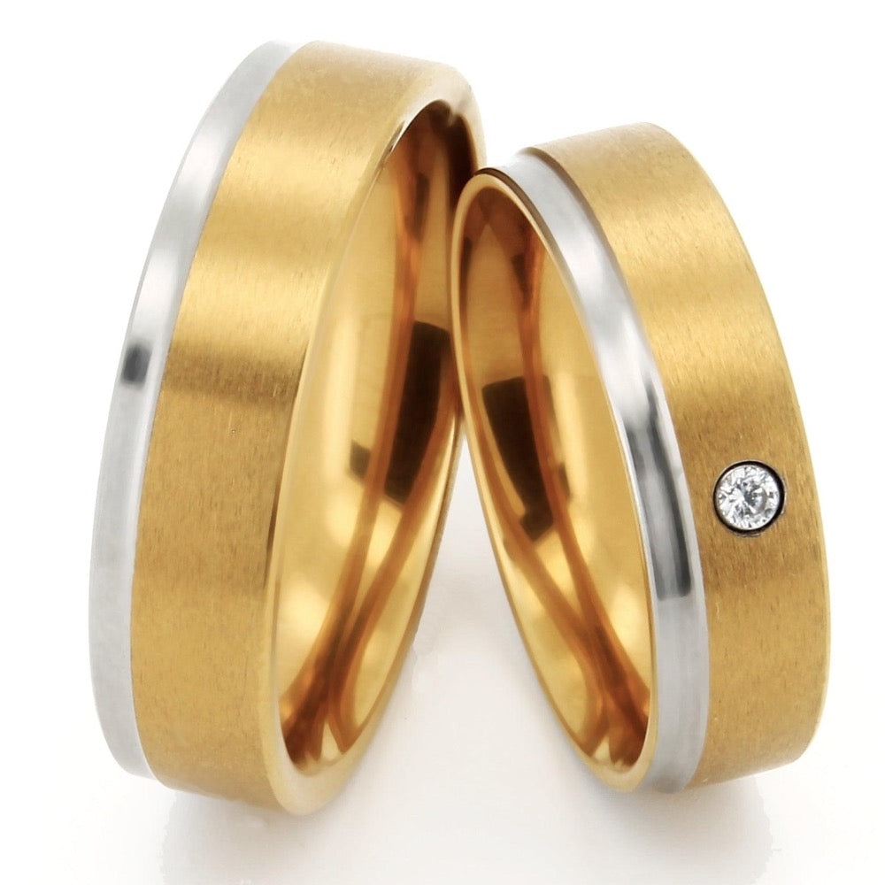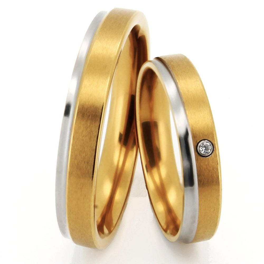 Obrączki i obrączki ślubne TICO® I tytanowe złoto IP z diamentem