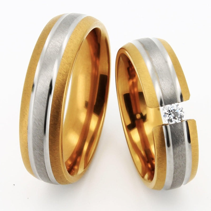 Obrączki i obrączki ślubne TICO® I tytanowe złoto IP z diamentem