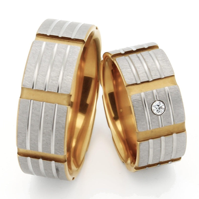 Obrączki i obrączki ślubne TICO® I tytanowe złoto IP z diamentem