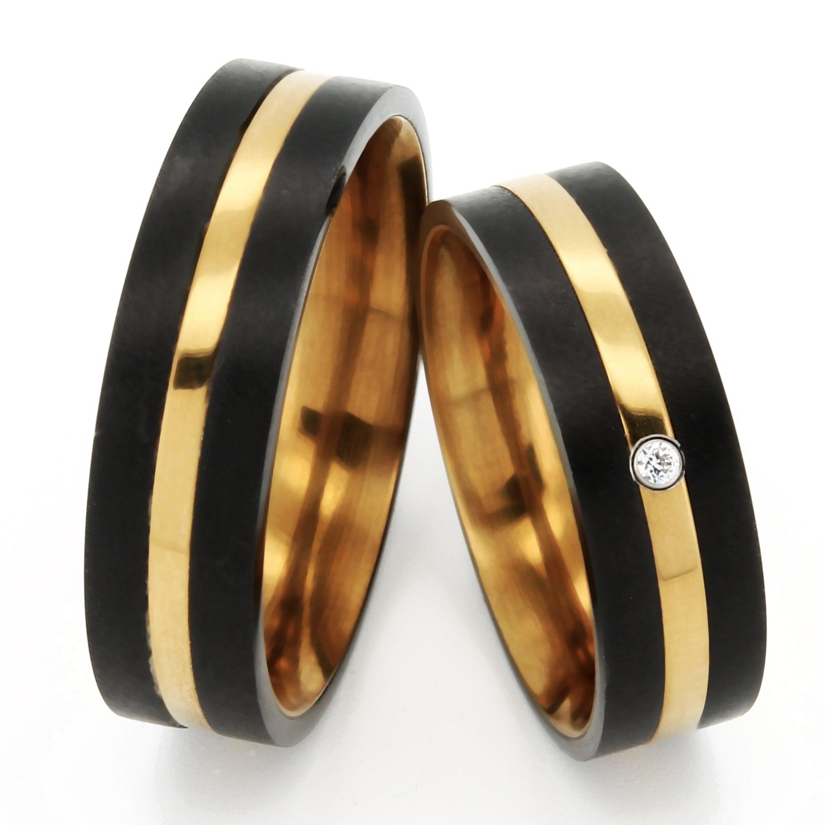 Obrączki i obrączki ślubne TICO® I tytanowe IP czarne/złote z diamentem