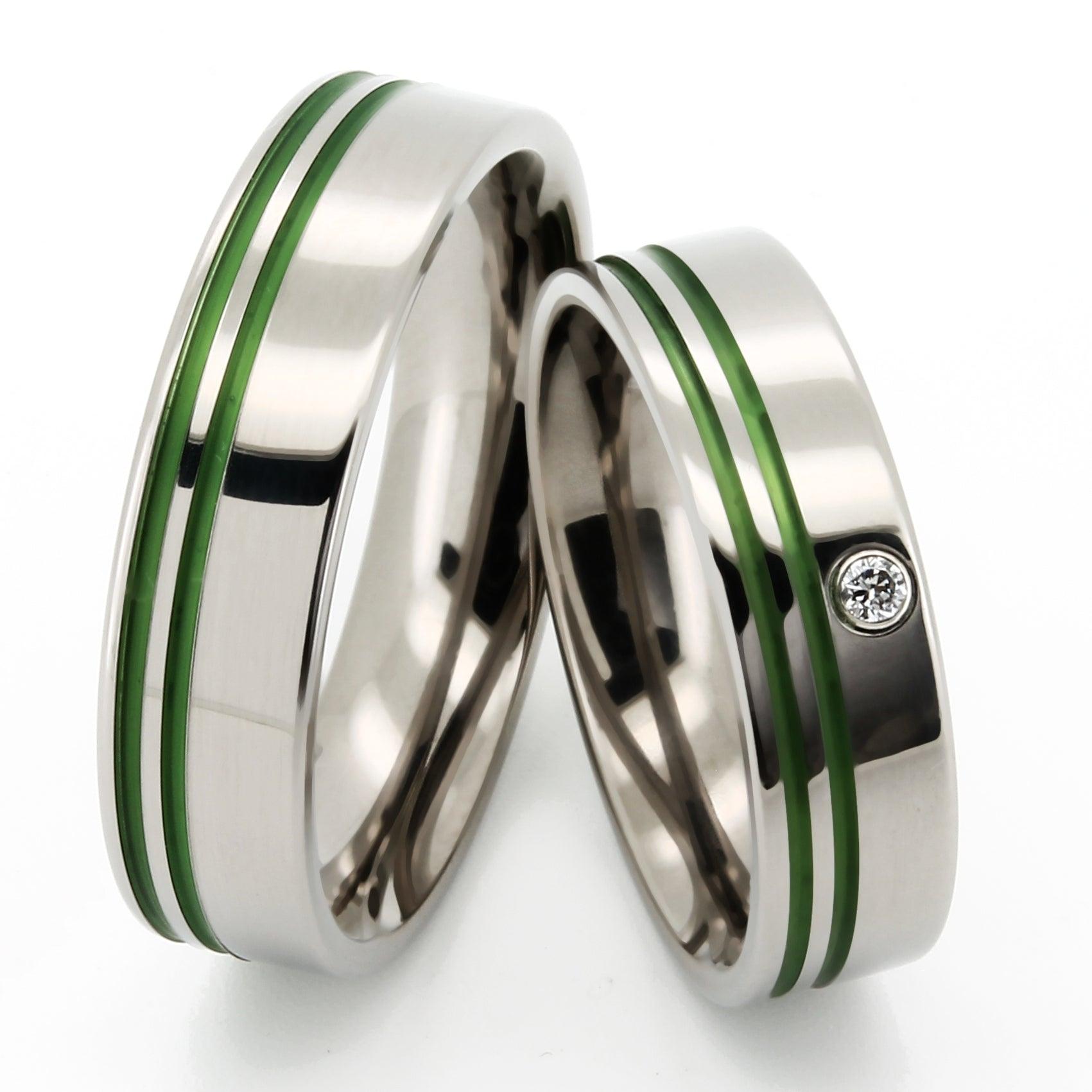 TICO® I obrączki i obrączki tytanowe z zieloną ceramiką i diamentami