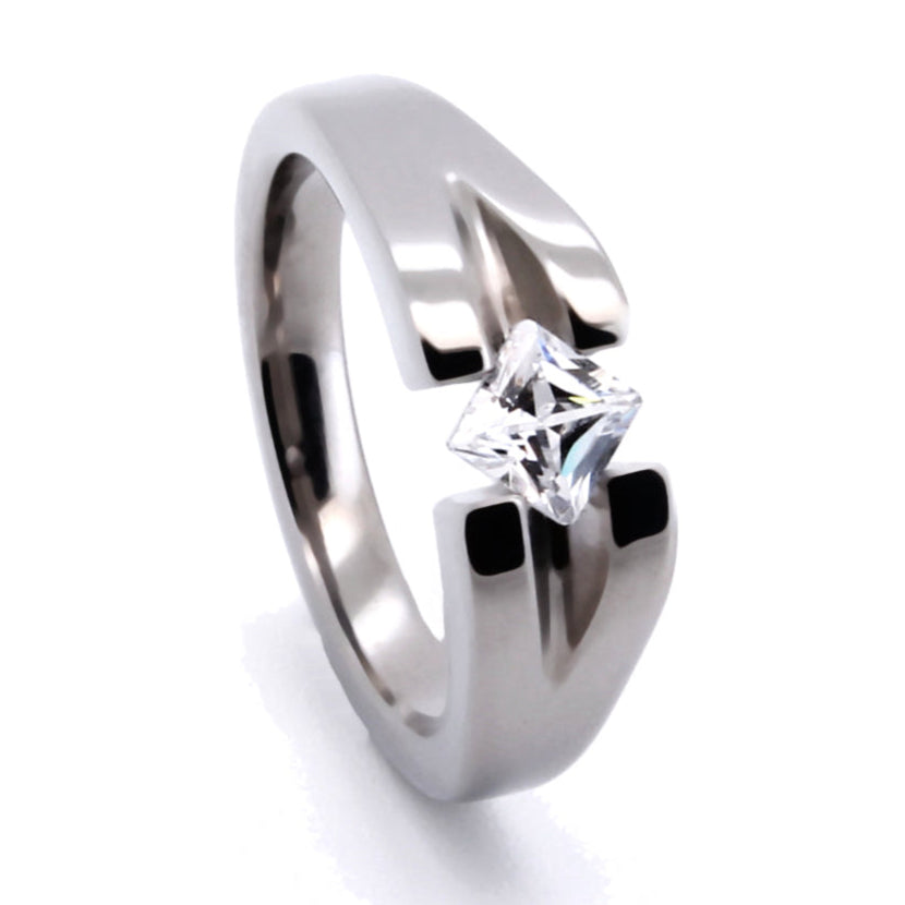 Tytanowy, stożkowy, polerowany pierścionek zaręczynowy z diamentem o szlifie księżniczki (0,5–1,0 ct)