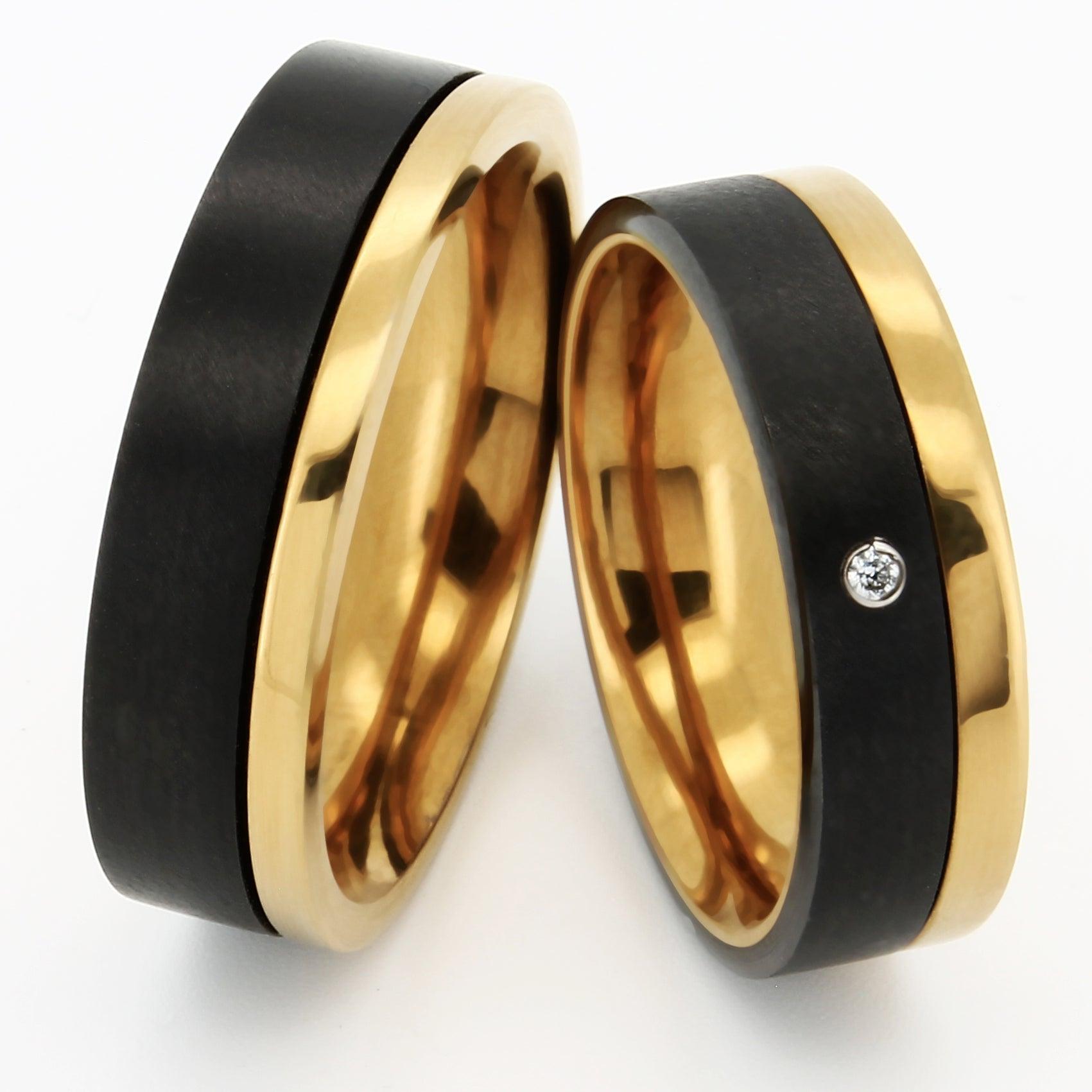 TICO® I Eheringe & Trauringe Titan IP Schwarz/Gold mit Diamant