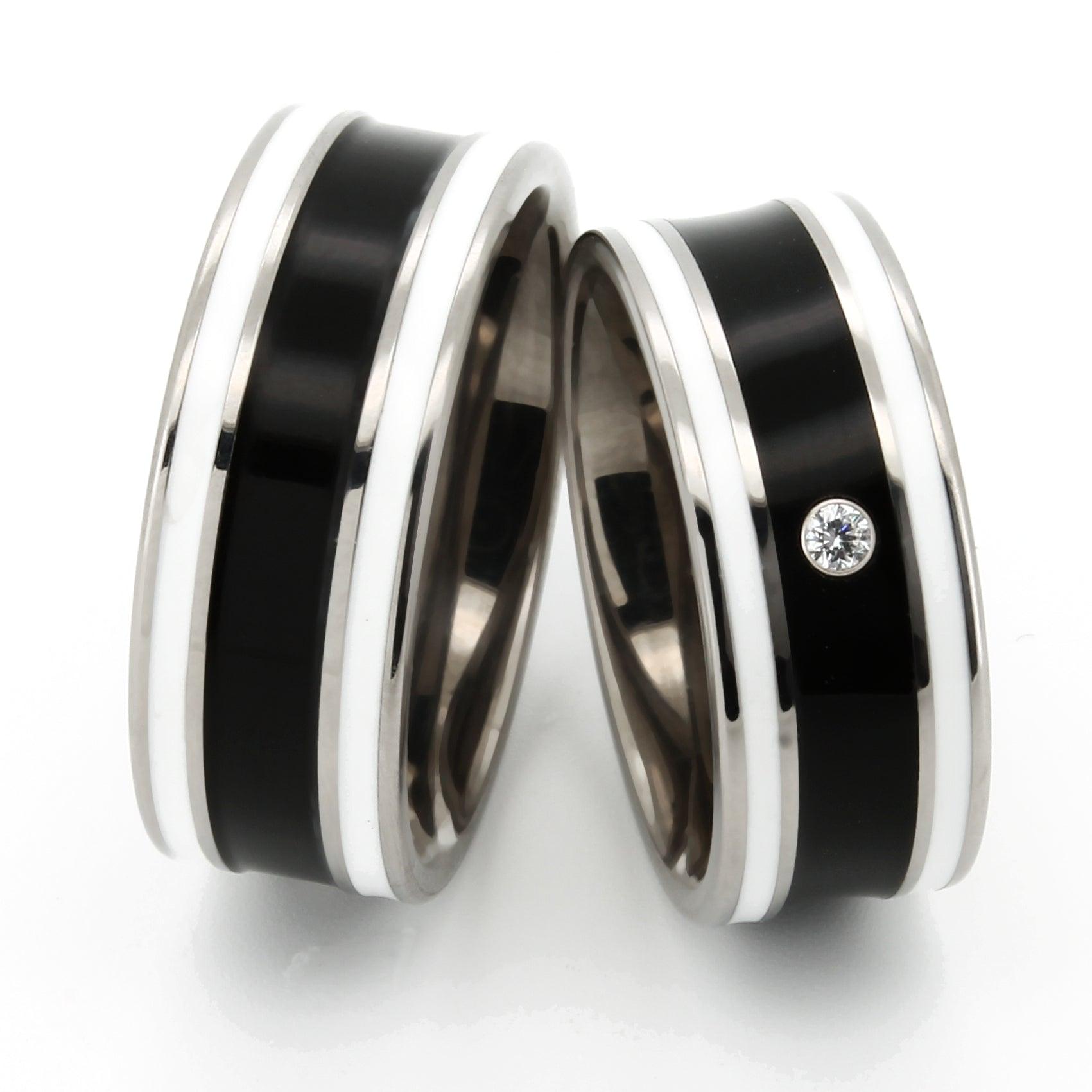 TICO® I Eheringe & Trauringe Titan mit Schwarz/weißer Keramik und Diamant